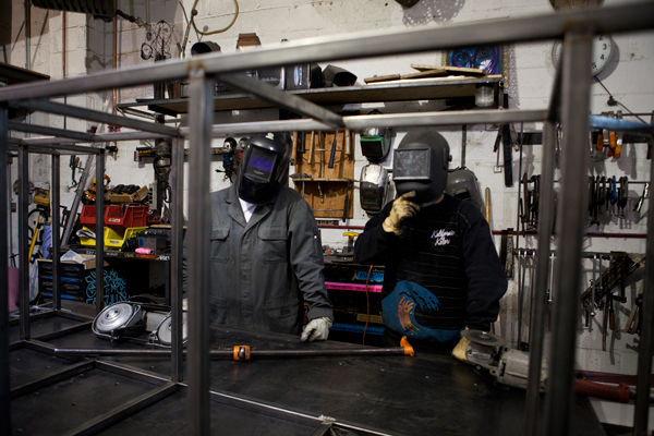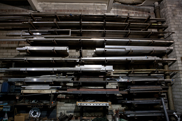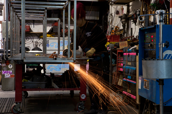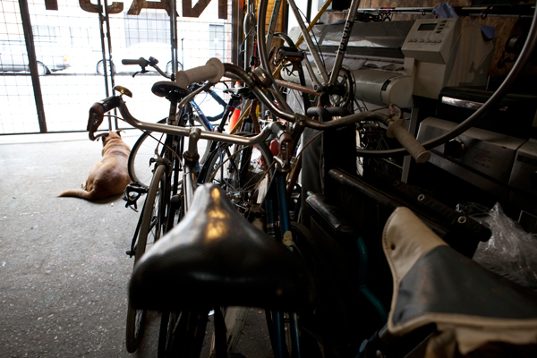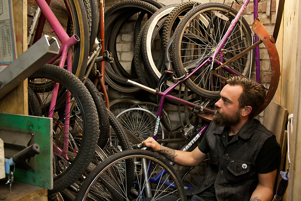 That customer base has since expanded beyond his immediate circle. In his Bushwick shop, he builds bikes for customers, but he has also taught classes on bike sculpture at 3rd Ward and even designed a set piece for a Lady Gaga video. And there’s more to come. “A slew of projects will be rolling out this spring,” he tells us, “including a public art installation at BAM, a bike parking-lot at Etsy’s DUMBO headquarters, plus some fresh new track-frames by summer.”