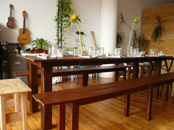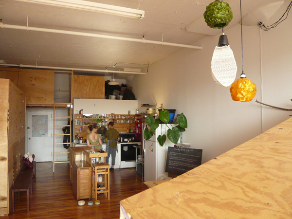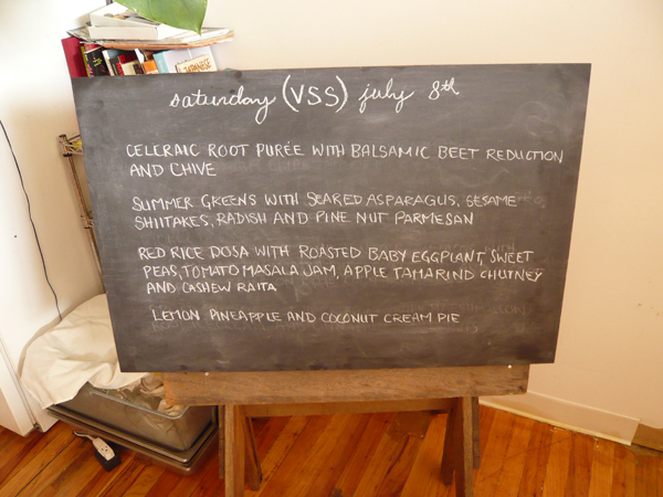 It’s a big mix of people. When I first started it was friends and younger people but now it goes from that to people in their sixties. [Mérida starts washing dishes.] In Vancouver where there aren’t as many vegan restaurants, people would come in from the suburbs because they didn’t really have anywhere to eat. Here [in New York] there are obviously a lot more options. There were a few other supper clubs in Vancouver, but when I started there was only one other and it wasn’t vegan. Since then a lot of other ones have started. I’m always thinking of things I can do that aren’t real jobs, proprietorship to proprietorship. I don’t really know how to work for anybody else. I had a fashion line for four years, but I ended up breaking both of my arms at the same time.