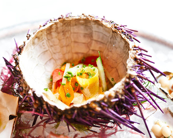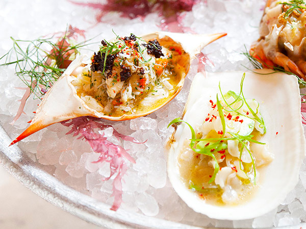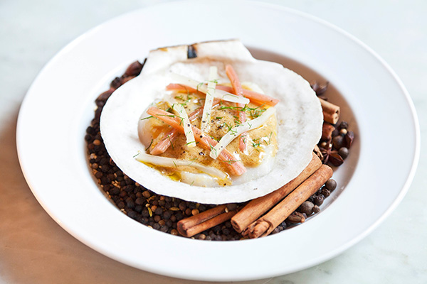 A selection of shimmering, ice-chilled items is the definition of under-the-sea exoticism — geoduck with white soy and avocado, razor clams with chorizo and coco beans, sea urchin with melon. Perfect for sharing with a paramour, each barely-cooked bite encourages a lusty pas de deux of mini shellfish forks — playfully wrestling for the last taste of sea bass crudo with fennel pollen like a culinary version of footsie.