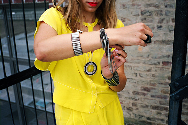 When designer Laura Wass of WXYZ Jewelry first ventured into Brooklyn, it was magical. “I moved into a surreal converted factory in Brooklyn—stair-cases made of intersecting chairs, walls built from pastel vintage suitcases, a waterfall for a shower, secret peepholes, a full darkroom and woodshop. It was the epitome of what I imagined my New York experience would be built on. It was an inspiring and crazy kind of initiation.” After a brief foray into Manhattan (what was she thinking?), Wass returned to Brooklyn about a year ago and “hasn’t looked back since.” She has studio space in 3rd Ward, a multidisciplinary workspace in East Williamsburg, where she finds herself “surrounded by entrepreneurs, photographers, designers, craftspeople, web developers, engineers—and we all end up collaborating on each other’s projects and helping each other’s businesses grow.” Wass is inspired by and incorporates the industrial resources that surround her and “utilize[s] super old-school techniques and explore[s] cutting edge technology and unconventional manufacturing methods.” This juxtaposition of industrial materials and finely wrought designs makes for a unique and beautifully realized jewelry line. Wass calls her approach “the intersection of the unexpected and the obvious” and gave us an example of one of the more innovative materials that she used. “We were trying to figure out how to make… beads that weren’t too heavy, thinking, what else is flexible yet durable and feels great on the skin? Can you guess what type of product we ended up emulating? Think intimate toys…”