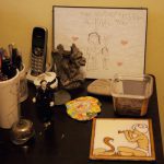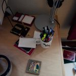I’m very attached to my office. The stuff I’ve put on the walls is all stuff that makes me happy to look at, or reminds me of artists I admire, and when I’m in it, I get to be in a universe free of school bus schedules, grocery lists, and all things that vie for head space when I’m on the other side. Plus, some of the things I do when I’m writing—like making the faces or gestures a character is making—wouldn’t go over too well in public.
