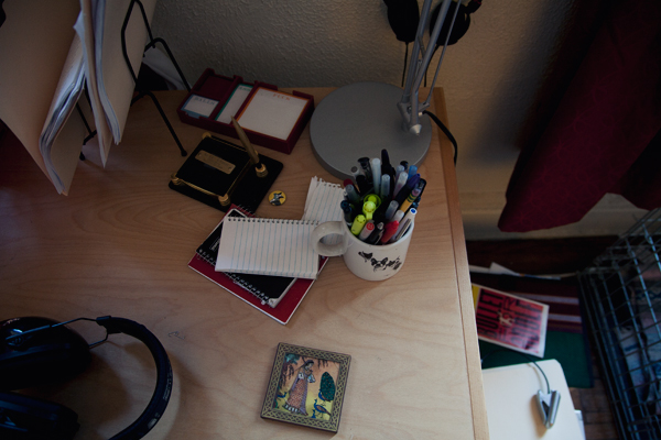 I’m very attached to my office. The stuff I’ve put on the walls is all stuff that makes me happy to look at, or reminds me of artists I admire, and when I’m in it, I get to be in a universe free of school bus schedules, grocery lists, and all things that vie for head space when I’m on the other side. Plus, some of the things I do when I’m writing—like making the faces or gestures a character is making—wouldn’t go over too well in public.