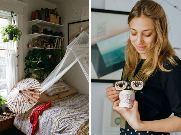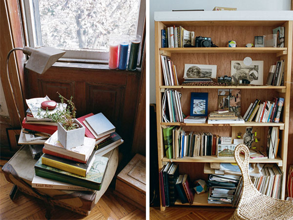Wass seems just as fortunate in her latest digs, a bright, open apartment in Clinton Hill, that she shares with Pepi Ginsberg (lead singer of the band Companion), and Lucy Childress (a photographer… and nurse!). Though perhaps Wass has made her own luck, choosing to live with an assortment of artists, designers and other creative Brooklyn types, insuring the kind of osmotic, (mostly) accidental collaboration that can often lead to great art (Wass recently made her acting debut in a Companion video). Communal living is the daily reality for an overwhelming number of young, creative Brooklynites, and rather than pining for unattainable solitude, Wass and her roommates have embraced the positive side of cohabitation, building a community from the kitchen table out.