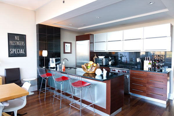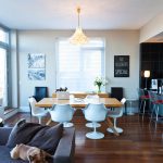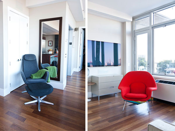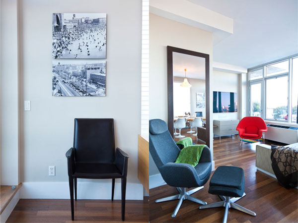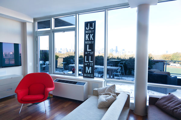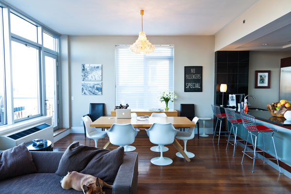Perhaps the most sought-after Brooklyn space, the brownstone offers the chance to live in a home with towering ceilings, inlaid hardwood floors, and ornately carved mouldings. But the best of these interiors subverts this historic tradition, and Michael Karam’s is no exception. Karam both honored the space and had fun with it, injecting levity by displaying a candelabra in a non-working fireplace and using mid-century modern furniture to complement the lines of the interior.
