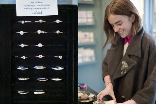 These are the things the women behind Catbird like; things that are “tiny, shiny, and gold.” But really, that’s just the beginning. Situated on Williamsburg’s main drag, Catbird is the kind of magical place that feels like it can only be reached by climbing through an enchanted wardrobe full of heavy fur coats, not by walking down Bedford Avenue and opening a regular glass door. And yet, there it is!