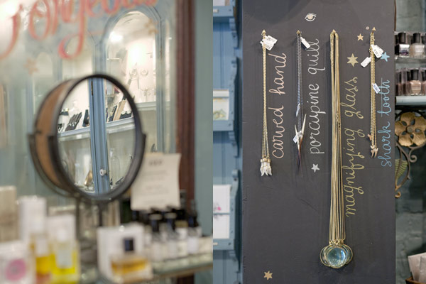Once inside, it is breathtakingly easy to be transported by all of the beautiful things that have so clearly been meticulously chosen and are perfectly displayed. Everything from the ampersand earrings to the delicate first knuckle rings to the exquisitely crafted pendant necklaces seem designed to transform the body part that they will call home.