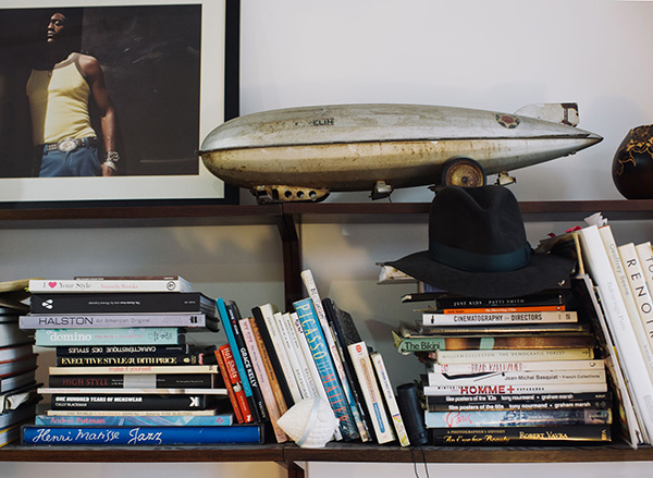Kiechel’s home is full of artful family heirlooms—including an old toy zeppelin that used to be her father’s and some of the clothing that her mother designed—and other things that serve as inspiration to her handbag line. The line itself, designs for and pieces of which are displayed around the home, also works as decorative art. The handbags are notable for being both practical and beautiful, utilitarian yet feminine. Kiechel told me how rooted her life is in “authenticity” and it is easy to see that in the consistency of the aesthetic inside her home.
