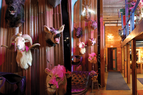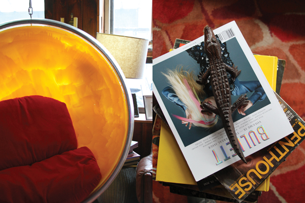 Earlier, Colgan had told me, “My favorite thing, the coolest thing we have is a taxidermy lion head, which was from a shoot that Shawn did with Andre 3000 and it was really hard to get—as it should be—they didn’t even use it in the shoot but it’s super unique and we have it and now everyone wants to take a picture of it. I never thought much about taxidermy before but it’s really cool. I’ve met a lot of great people. Like there’s this guy upstate who did Siegfried and Roy’s lions. So, yeah, there’s a lot of interesting people in the taxidermy world. In fact, we’re going to have a taxidermy class here. You start with a mouse.”