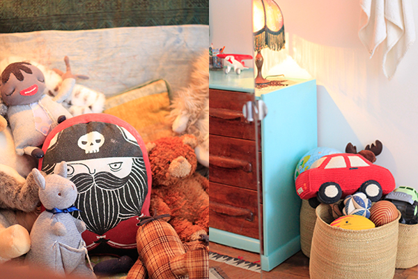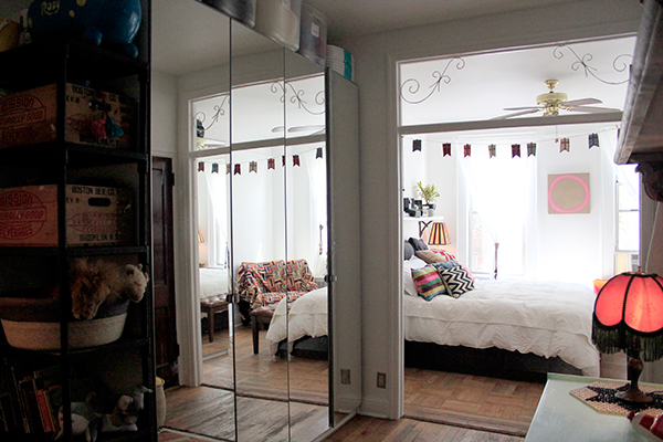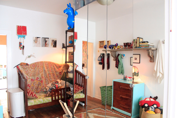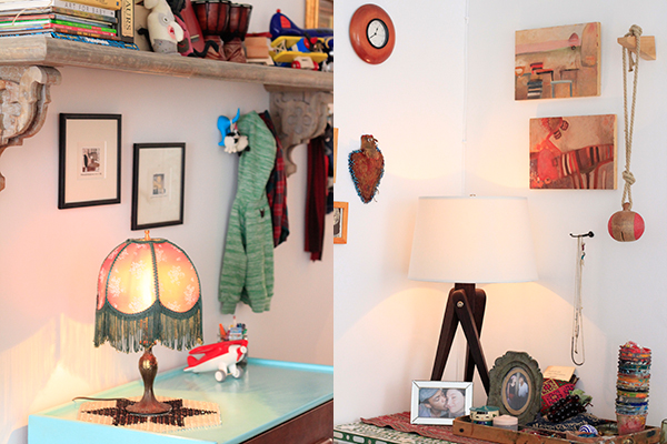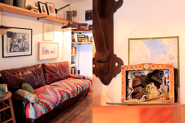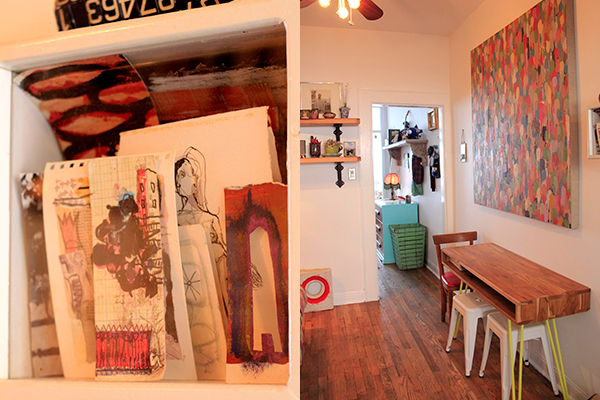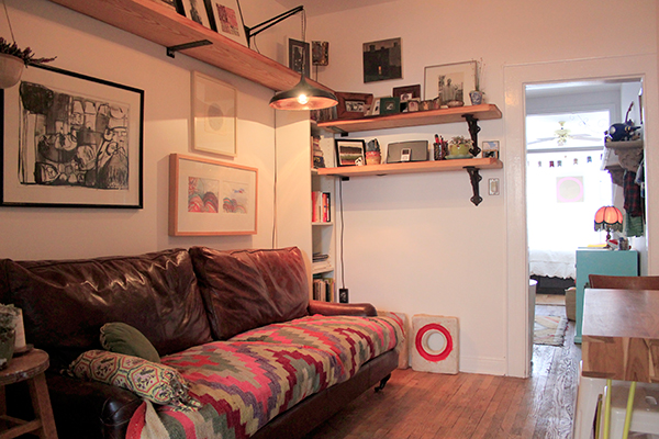 Located right in the center of Williamsburg, which can feel like the center of the incredibly chaotic universe, is the serene home that artist/designer Scosha Woolridge shares with her husband, Joe, also an artist, and their young son, Summit. The apartment, located in the back of the building and protected from the noise of the streets, is flooded with sunlight and full of vibrant art and beautiful textiles and, well, life.
