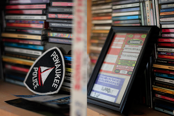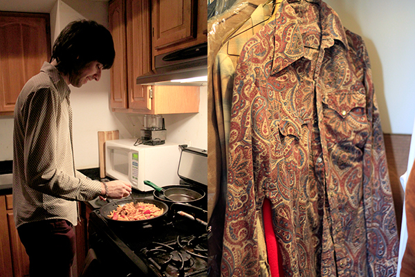Probably my hard drive, just because so much of my work is digital, though I actually have a cloud backup. I’m pretty religious about backing stuff up. Probably just all of the various things that I’ve created, like my miniature slum buildings. I think anything that I’ve created myself has special value. Maybe one of my paisley shirts, just because those are kinda hard to find. Or maybe my Reading Festival badge, from when I was playing in Titus Andronicus. I feel like that’s a unique keepsake. Maybe my chairs, but you probably couldn’t carry those out fast enough.