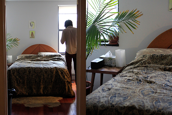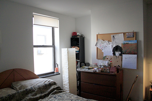 His room’s littered with paraphernalia from his dual lives as a musician and a student: electric guitars and miniature housing models; vinyl records and architecture textbooks. After inviting us inside with a reference to the seminal punk documentary The Decline of Western Civilization, he went on to lament the structural integrity of the apartment’s doors. Welcome, readers, to the 21st century.