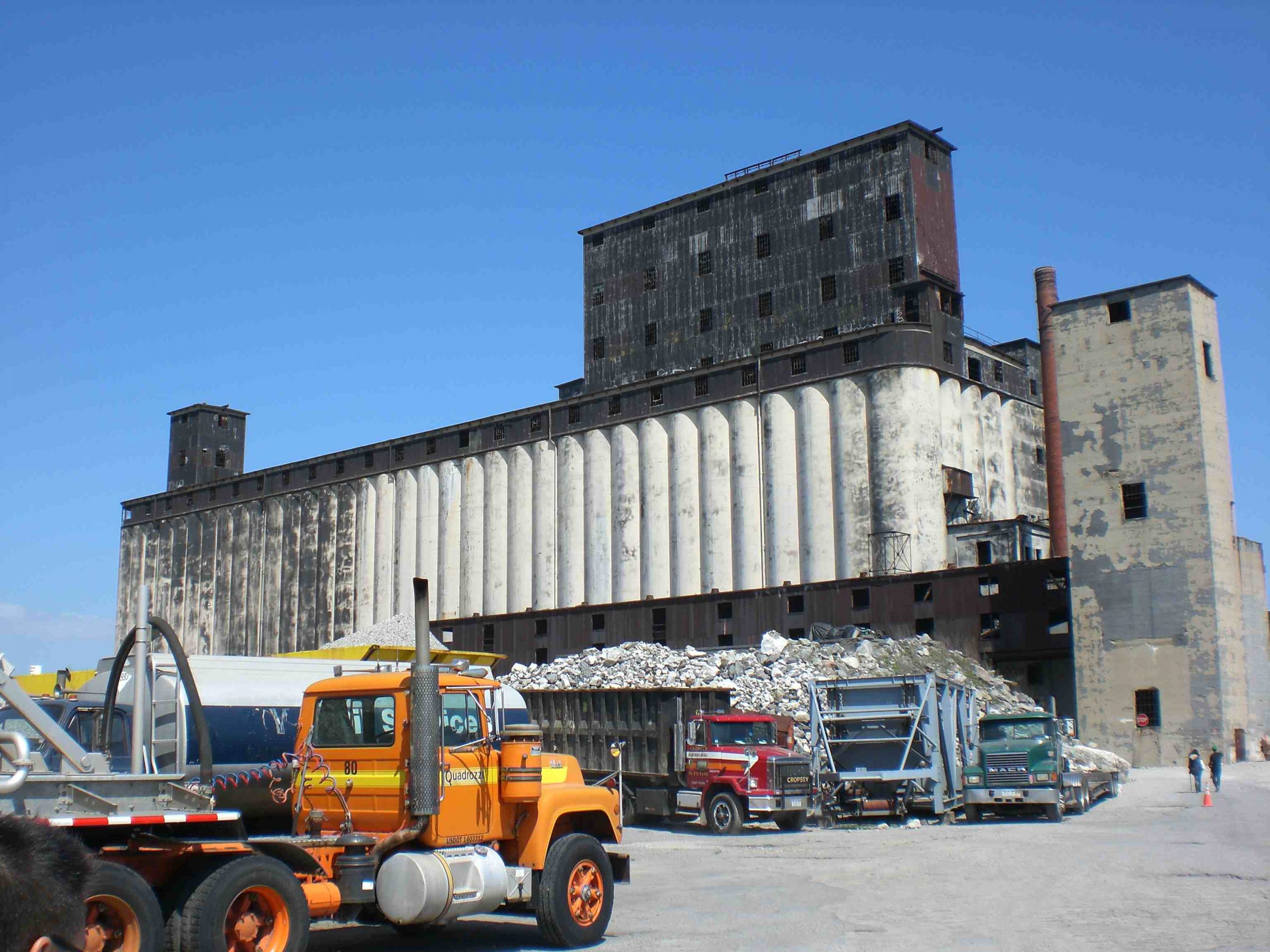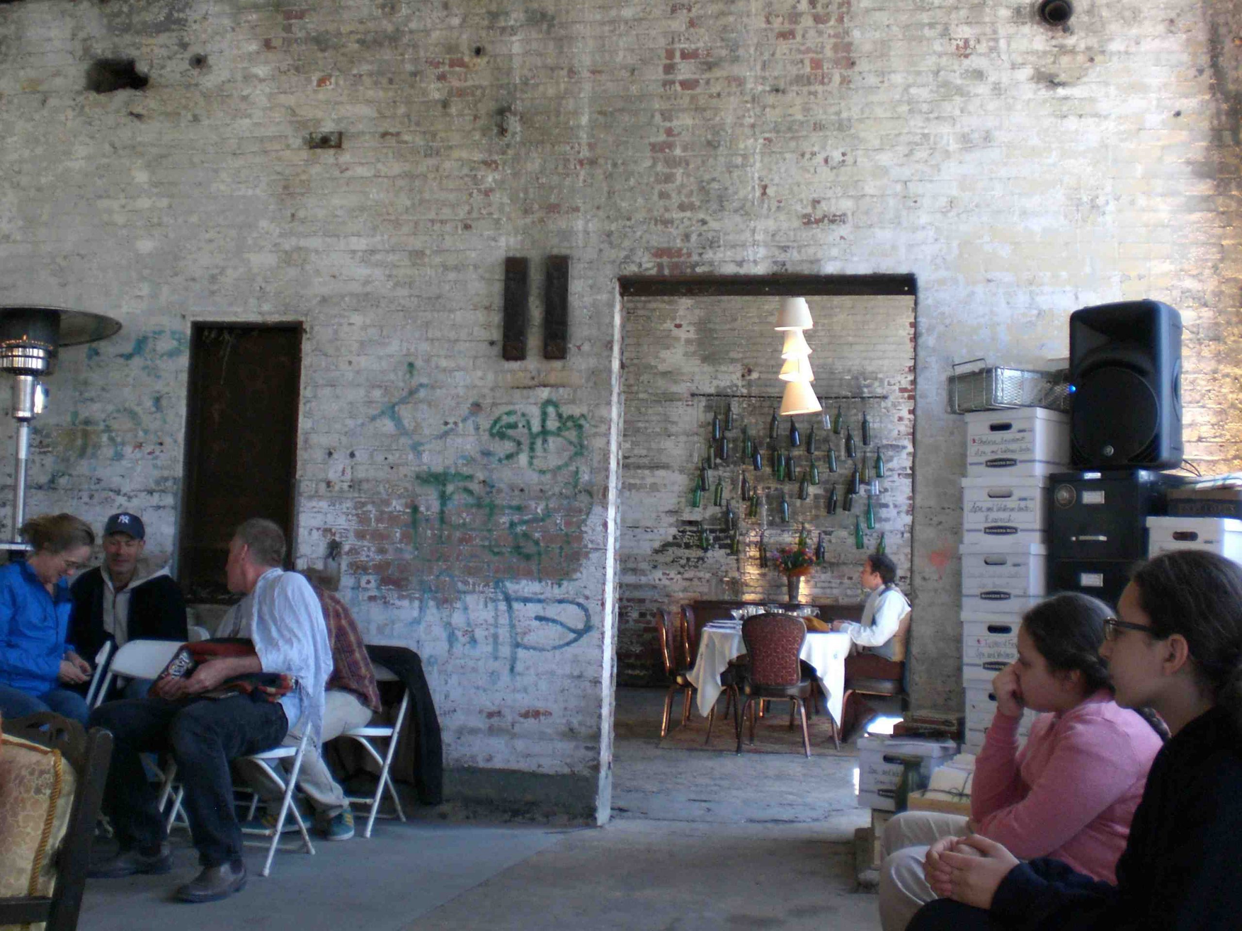 The Gowanus Bay Terminal, an industrial facility along the south end of Columbia Street in Red Hook, is not usually open to the public. But this weekend, one of its old workshops, out of commission for the last several decades, hosted Falconworks‘ production of Ibsen’s An Enemy of the People. (About a doctor who’s ostracized after he discovers his town’s water is polluted, it felt relevant to Red Hook for its ongoing battle with the EPA about storing toxic canalwaste there; half the windows in the neighborhood have “SAY NO TO A TOXIC RED HOOK” posters.) While still an active site—home to that enormous Grain Terminal building—it’s also full of structures that have been left to ruin. We took lots of pictures!