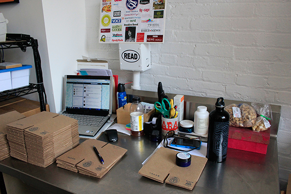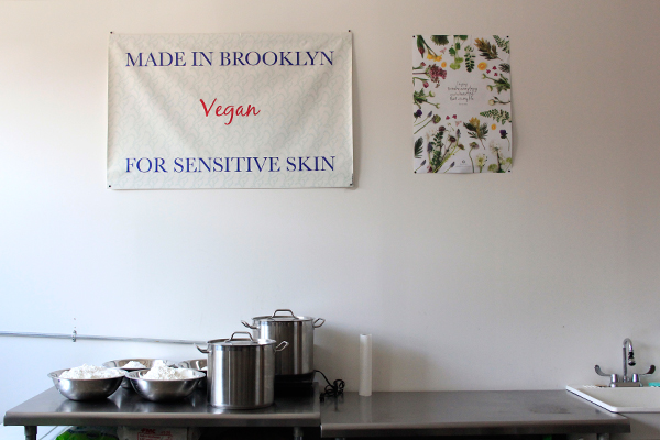 “It’s actually set up more like a commercial kitchen than a skincare lab, because of the nature of my products,” Winard explains, putting together boxes for deodorant cream, the product that shot the company into the public eye. “I’m using food-grade ingredients, and I would say the method in which I make things is more akin to cooking than chemistry. When I first started researching natural skin alternatives, I had been diagnosed with lupus and my skin was just freaking out. I got my hands on anything and everything I could read, and a lot of the really valuable information came from sort of old wives tales, herbs people have been using for years, and also the best ways to extract.”