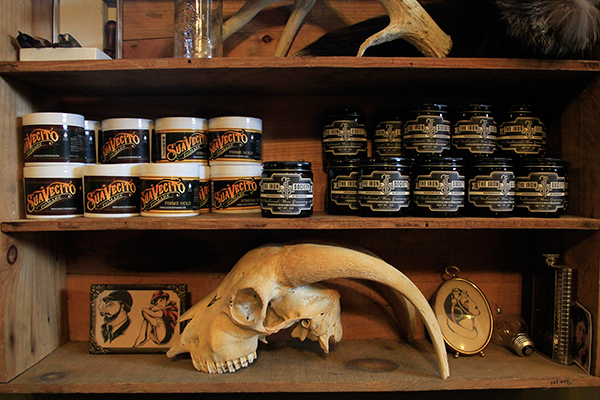 I’d go as far to say that the Iron Society is not only DeSanty’s project, but his obsession. The creative innovation DeSanty sees in Brooklyn is the main gear of the Iron Society. “I can’t stop thinking, like, ‘what’s next, what’s next,’ and if I want something, I need it now.” The Iron Society is a balance between indulgence and sustenance, though heavily leans towards the former. He often goes broke in service to his ideas: in the middle of the interview, a UPS agent wailed bloody murder on DeSanty’s door to deliver a vat of lanolin, a key ingredient in most traditional pomades. “It nearly breaks the bank every time.”