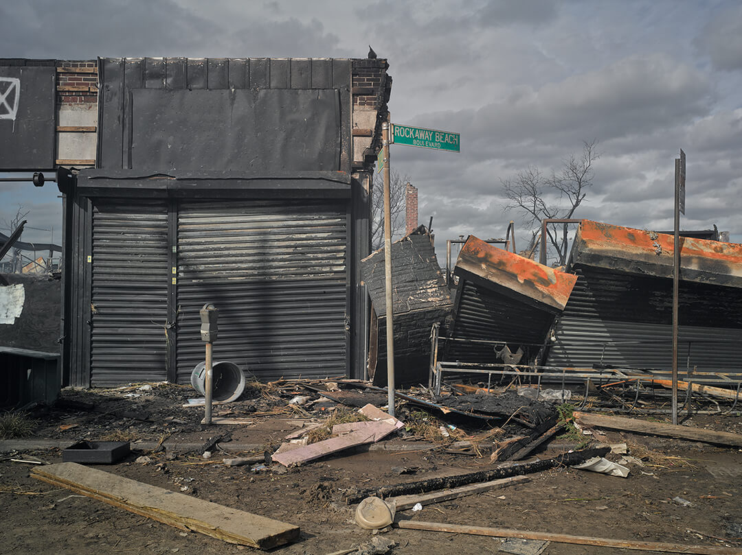 With the anniversary of Hurricane Sandy approaching, tributes (and perturbing updates on the recovery process) have started pouring in, and even after a full year of shocking images from the storm, there still isn’t anything that has a more visceral impact than pictures of the destruction. Shortly after the storm, photographer Gilles Peress, whose photos are now being published in Concord Free Press’ collection The Rockaways, explained, “Shooting pictures in Breezy Point and in Far Rockaway was transformational, a deep experience. The devastation is on such a scale, the pain is on such a scale, that I really have a feeling of having entered into another dimension.” Particularly stark words coming from a photographer who’s spent much of his career shooting in Northern Ireland, Palestine, Iran, Rwanda, and Iraq.