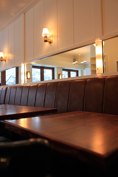 Not that French Louie is worlds away from their original, much-loved eatery, either in proximity or spirit. Buttermilk Channel is essentially an American take on a Parisian bistro; French Louie flips it, adding touches of regional influence to a concept that’s mostly, well, French. In contrast to Buttermilk Channel’s rough-hewn communal tables and exposed brick walls, the sunny French Louie boasts all of the requisite brasserie touches—frosted glass and chrome bar, sconces and mirrors lining rows of graceful banquets—albeit fashioned from très Brooklyn materials like reclaimed wood and salvaged parts (which the team insists owes more to a lean budget than a desire to be au courant).