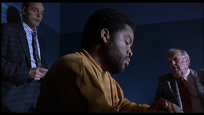 It’s fitting that Ice Cube—who, along with the rest of the seminal gangsta-rap group N.W.A., scored a hit and attendant controversy by rapping “Fuck tha Police”—appears in this film as an ordinary guy framed by the Los Angeles police for murder. In essence, The Glass Shield is Burnett’s feature-length “Fuck tha Police” movie, one that courses with a similar sense of outrage at the corruption it portrays. If Burnett’s anger to some extent overrides the sense of poetic observation that distinguished his earlier films (Killer of Sheep, My Brother’s Wedding, To Sleep With Anger), his welcome attention to humanistic nuance still occasionally shines through. Otherwise-innocent rookie cop J.J. Johnson (Michael Boatman) does make one costly mistake as a result of his initial eagerness to fit in; even crooked detective Gene Bass (Michael Ironside) is allowed one poignantly human moment in his devastated reaction upon seeing a long-time friend/colleague die right in front of him. Appropriate, then, that Elliot Davis’s cinematography in The Glass Shield abounds in shadowy interiors and silhouettes: No one is completely good or evil in Burnett’s world, as the main character eventually, heartbreakingly realizes. Kenji Fujishima (September 8, 4:30pm, 7pm, 9:30pm at BAM’s “Set It Off: LA Hip-Hop on Film”)