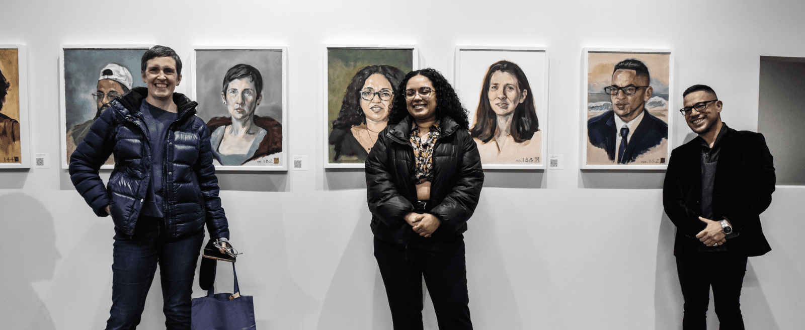 Subjects and their portraits. From left: Elizabeth Connor, 48, an art director; Anngillian Cruz, 36, a patient care coordinator; Anthony Colon, 42, a real estate manager (Photo by Stephanie Keith)