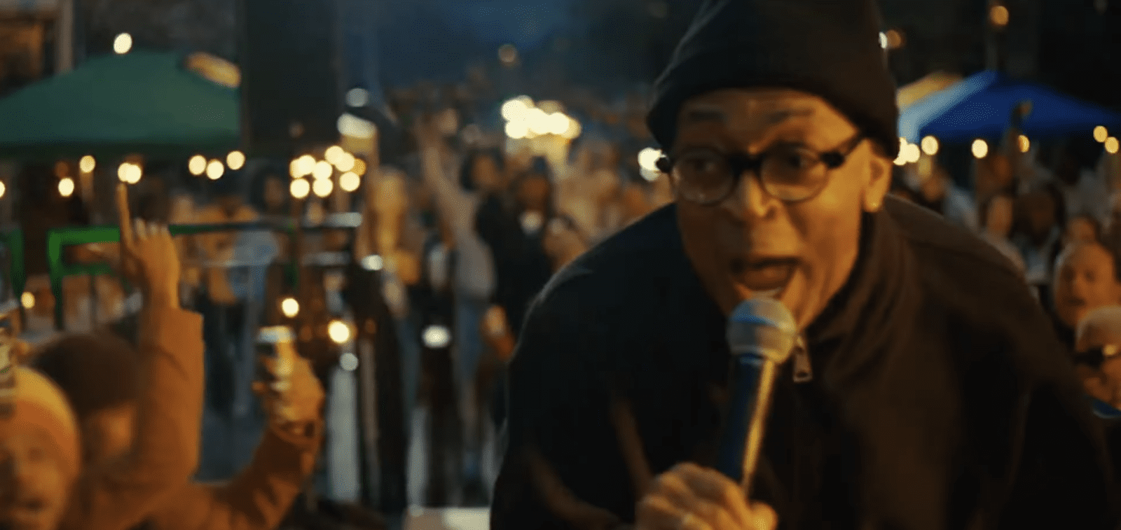 “This is Brooklyn!” Lee shouts into the mic, echoing the ad’s tagline as the crowd swells around him.